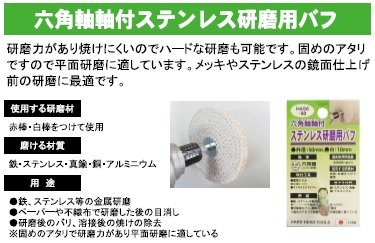 【日本製】 H&H 六角軸軸付 ステンレス研磨用バフ HAS6-50