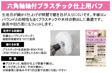 【日本製】 H&H 六角軸軸付プラスチック仕上用バフ HKY6-50