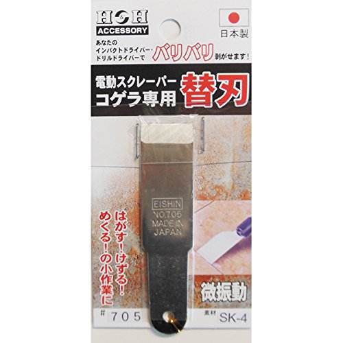 インパクトドライバー用、ドリルドライバー用 スクレーパーあなたのインパクトドライバー・ドリルドライバーでバリバリ剥がせます!ペンキ・サビ等のはがしに。使用できる電動工具■電気式・充電式インパクトドライバー■電気式・充電式ドリルドライバー(正・逆回転切替付の電動工具)■SK-4製幅:20mm 長さ:85mm 厚さ:2.0mm