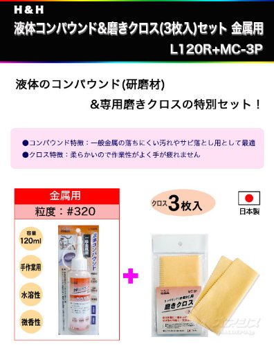 液体コンパウンド&磨きクロス(3枚入)セット 金属用 L120R+MC-3P