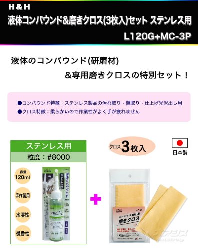 液体コンパウンド&磨きクロス(3枚入)セット ステンレス用 L120G+MC-3P