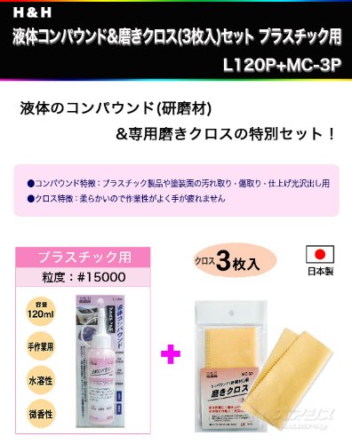 液体コンパウンド&磨きクロス(3枚入)セット プラスチック用 L120P+MC-3P