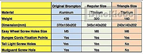 Ideal for Touring (Full size) or occasional load Q version (both can work with X-roller Ezwheel Extender to achieve ultimate smooth roll), they are very strong. Both versions compatible with ezwheels (6mm screws), give your B more stable roll with four wheels and stand up straight. Mudguard and tail light compatibility please refer to the spec table below. 6061 Aluminum tube with T6 heat treatment, strength remains the same as Titanium version. Matching Titanium Front rack also available in Other Listing. This listing is for one Q verion rear rack Aluminum Electroplated Glossy Silver Colour only. Ezwheels not included.
