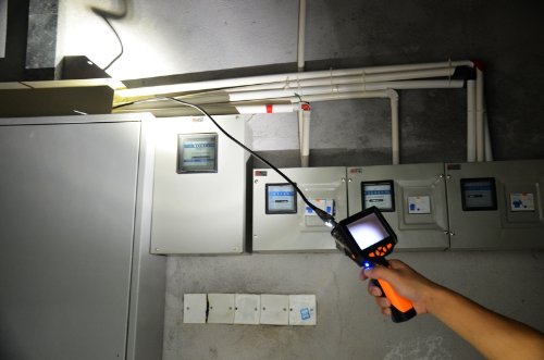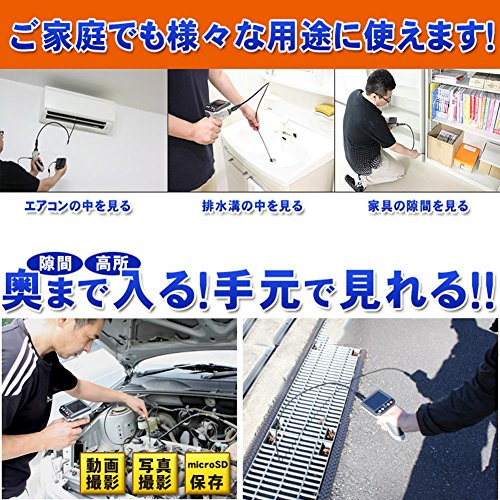 - クーラーや換気扇などの細いところや車の内部など目で確認できない狭い場所の様子まで確認することができるデジタル内視鏡です。直径8.2mmの細径カメラで長さ5mの長いケーブルで、狭いところでも潜り込ませることができます。