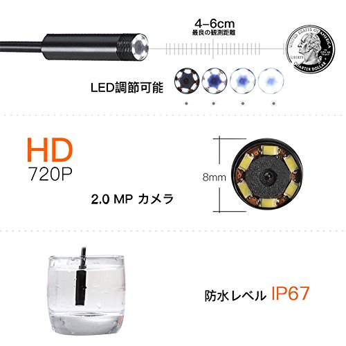 - 効能特徴:調節可能なLEDライト、高解像度のビデオ品質、防水カメラヘッド(IP67)、IOSもAndrewsも対応できる、スクリーンショット可能、録画可能、同期情報できます。