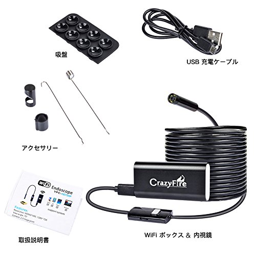 内視鏡 CrazyFire 8mm 高解像度 ワイヤレス内視鏡 調節可能LEDライト付き 5M 防水検査カメラ HD 720P 200万画素 PC、スマホ、タブレット対応