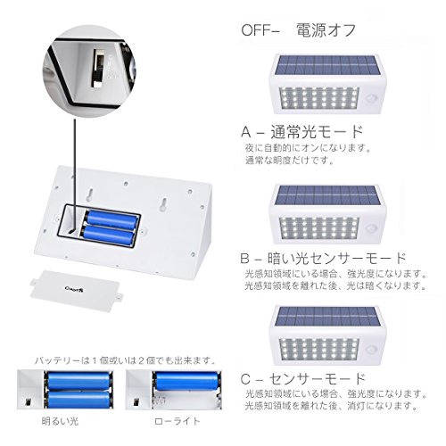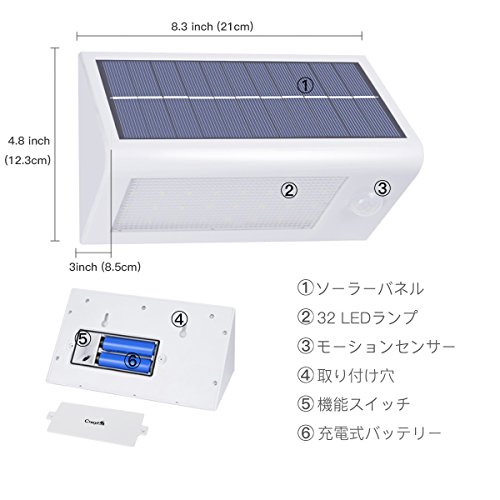 CrazyFire ソーラーライト 32LED 人感センサー搭載 IP65防水 自動点灯 省エネ 明暗センサー搭載 玄関/壁掛け/庭先等に対応