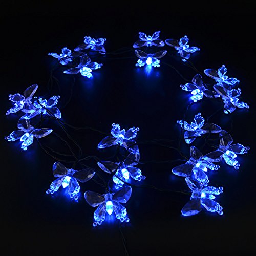 CrazyFire 20球4.8mソーラー LEDクリスマスイルミネーションライト (蝶, ブルー)