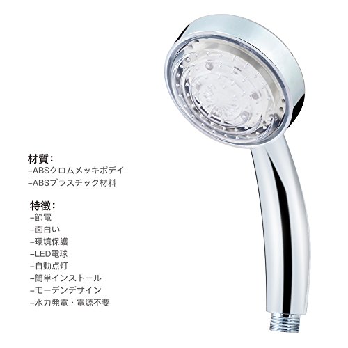 CrazyFire シャワーヘッド 3色変更 LEDシャワー 電源不要 節水・安全・省エネ バス用品 水力発電 温度センサ バスルーム