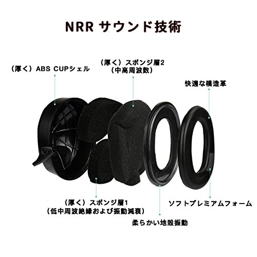 - ノイズ低減は32デシベルですが、イヤーマフは耳栓と併用するとNRR35dBの防音性能があります。