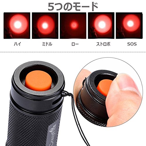 - レッド:高品質XM-L Q5 LED搭載したアルミニウム合金製懐中電灯(500ルーメン)!