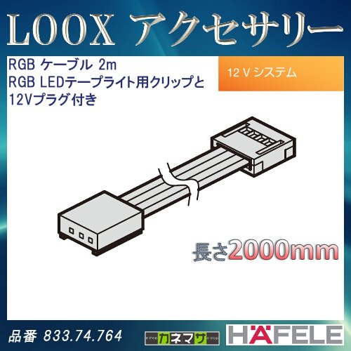 LOOX アクセサリー 【HAFELE】 RGB ケーブル 2m RGB LEDテープライト用クリップと12Vプラグ付 833.74.764