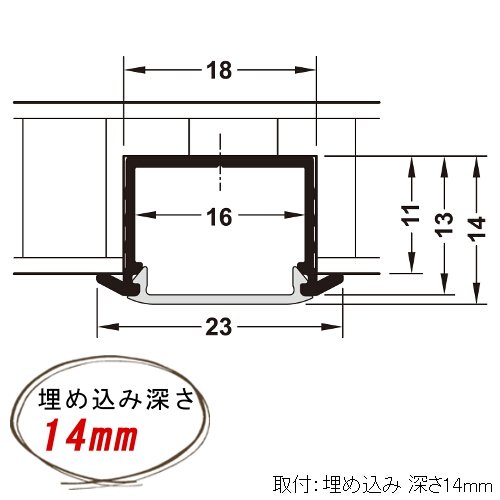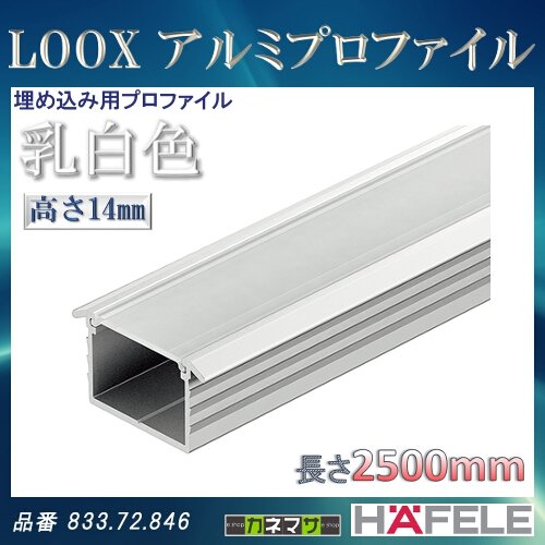 LOOX アルミプロファイル 【HAFELE】 埋め込み用プロファイル 乳白色 高さ 14mm 833.72.846