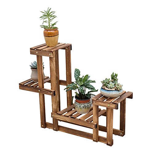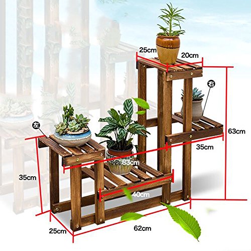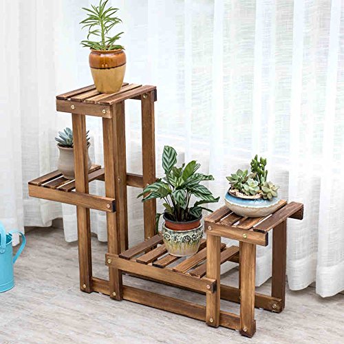 HAIZHEN フラワースタンド 多層ソリッドウッドフラワーラックバルコニーリビングルームインテリアフロア木製フラワーシェルフ(ホワイト、ウッドカラー) (色 : 木の色)