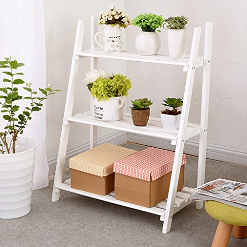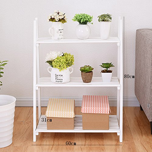 HAIZHEN フラワースタンド 3つの層は、桐の木の階フラワースタンドバルコニーのリビングルーム折りたたみ可能なバスケットポットラック60 * 31 * 80cm (色 : Without baskets)