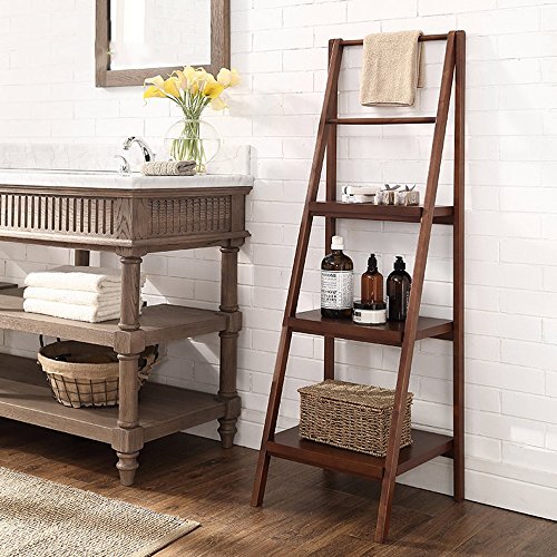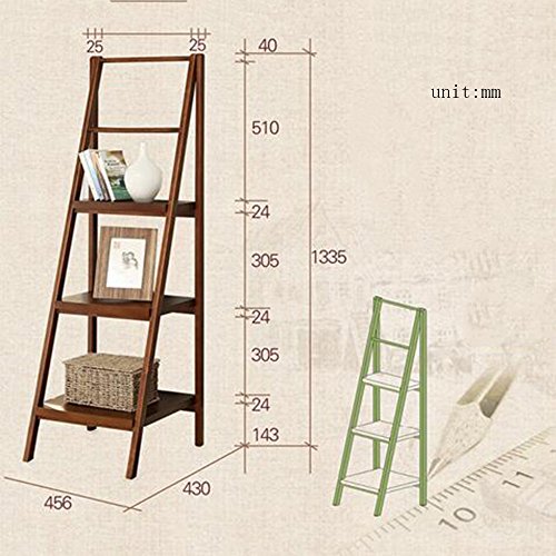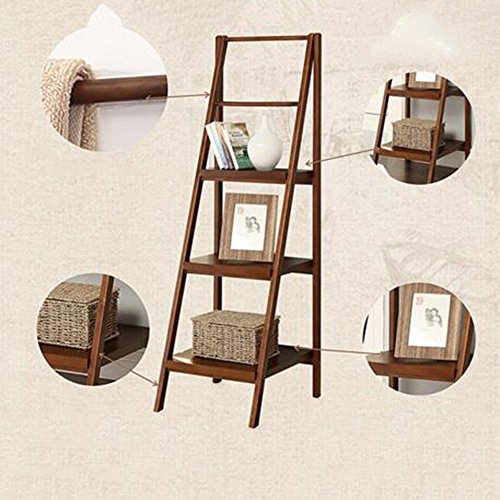 HAIZHEN スタンドシェルフソリッドウッドフレームラダーラックウォールシェルフフラワーシェルフブルー/ミルキー/ウォールナット ( 色 : ウォールナット )