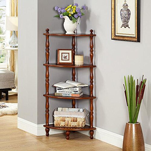 *モデム木製4段三角コーナーシェルフ、収納ディスプレイシェルフ