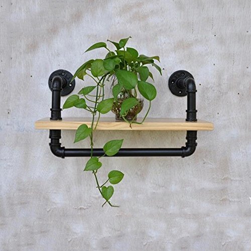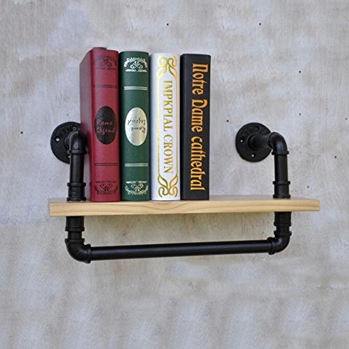 HAIZHEN ラック書棚壁取り付け式水パイプアイロン+ソリッドウッドシェルフ