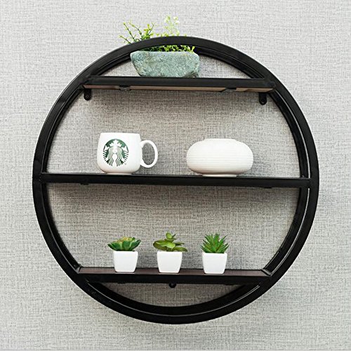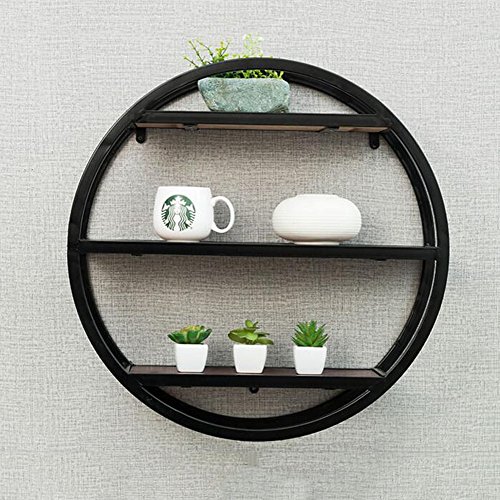 HAIZHEN 3層ソリッドウッドラウンド棚装飾的な棚店物事60 * 16 * 60センチメートル ( 色 : ブラック )
