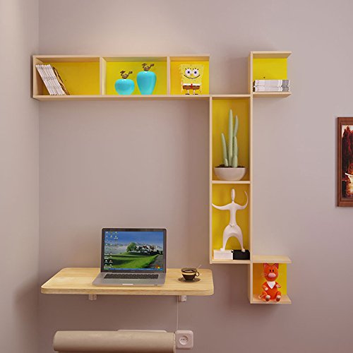 HAIZHEN 壁掛け折りたたみ木製キッチンテーブルの壁の装飾の壁の棚のコンピュータデスク ( 色 : Wood 60cm+shelf A )