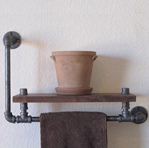 HAIZHEN ウォーターパイプラックウォールマウント鉄製ソリッドウッドラックバスルームタオルラック60 * 20 * 30cm