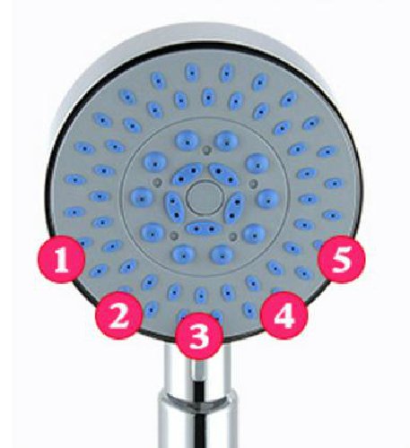- シャワーヘッドのレバーでシャワー、ミスト、マッサージなど5段階の水流切り替えができます。