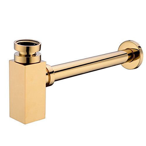hanebath真鍮コンテンポラリースクエアボトルPトラップ、ブラックまたはクロムまたはGolden 11-221G