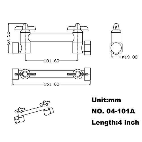 hanebath 4インチ真鍮シャワーアーム高さ調整シャワーヘッドコンボアームマウント、つや消しニッケルまたはクロム 04-101