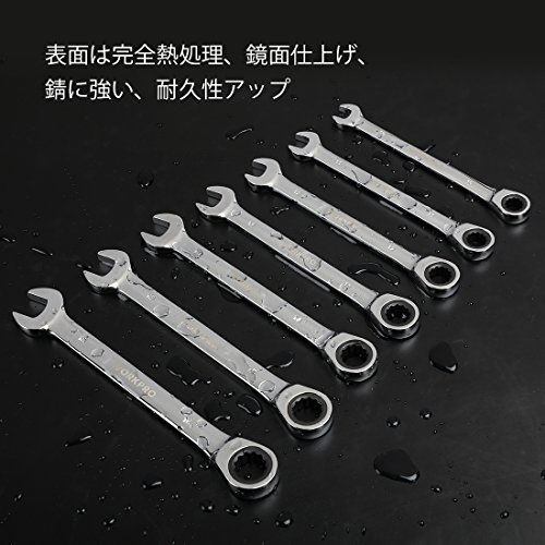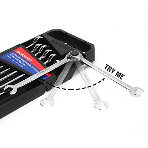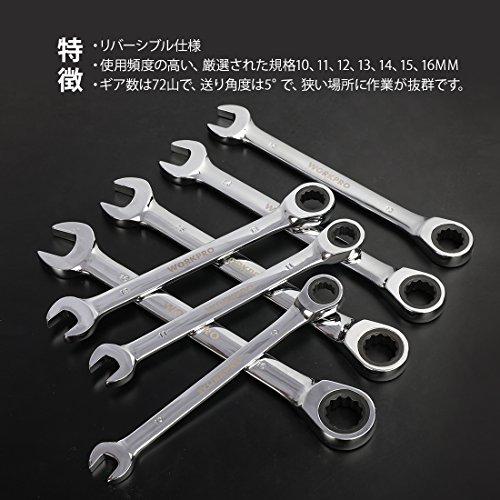 WORKPRO コンビネーションレンチセット スパナ ラチェット リバーシブル仕様 自動車修理 72ギア 7本組 10 11 12 13 14 15 16mm 【収納ホルダー付き】