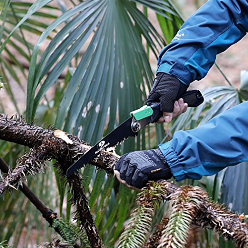 - 【設計】※手に優れたTPRハンドルで、滑り止めです。※固定することにより刃の揺らつきを防ぐため、ハンドルの背部に緑安全ロックが付いています。緑安全ロックを押したまま、ノコギリの開けると閉じることを行います。※ブレードの表面に特殊コーティングされ:錆を防止以外、また刃の無駄な摩擦の低減により作業がよりスムーズに行えます。※ブレードを交換する場合、ブレードロックを緩めて、ブレードを上-下の順序で動いて、簡単に外れます。