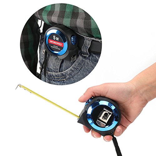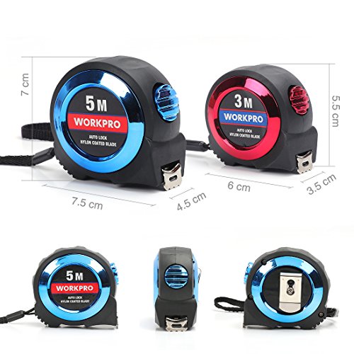 WORKPRO メジャー コンベックス ロックタイプ ストラップとベルトクリップ付き 耐衝撃性 オートロック機能付き メートル目盛 3m 16mm幅&5m 19mm幅 2本組