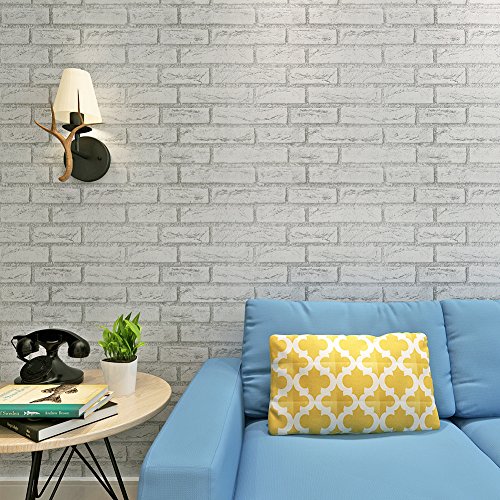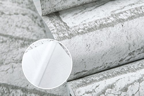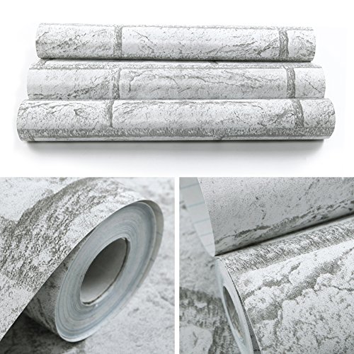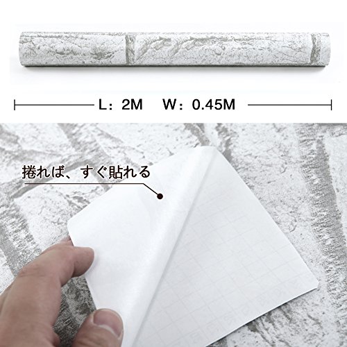 (ハンメロ)HANMERO®接着剤いらず粘着付き壁紙ビニールクロスかんたん貼付シールタイプおしゃれなレンガ柄DIY/模様替え/ファーニチャーリフォーム/ベッドルーム/リビングルーム用約45cm巾×2m巻(ライトグレー)