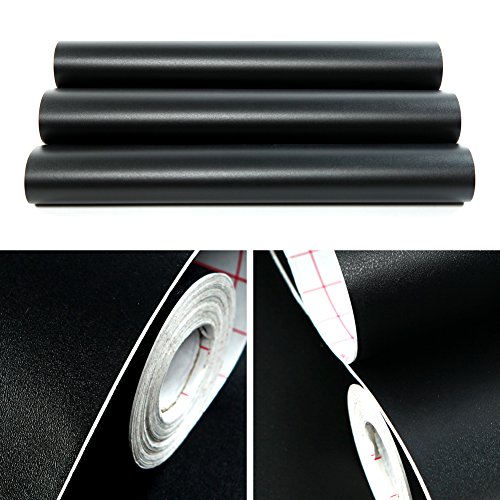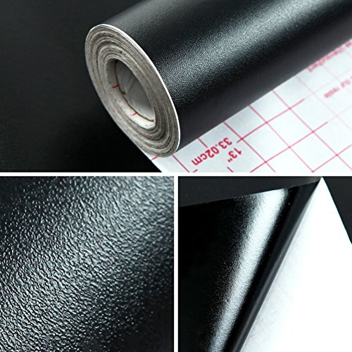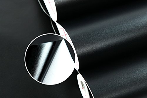 (ハンメロ)HANMERO®接着剤いらず粘着付き壁紙ビニールクロスかんたん貼付シールタイプ無地DIY/模様替え/ファーニチャーリフォーム/ベッドルーム/リビングルーム用約45cm巾×2m巻 (ブラック)