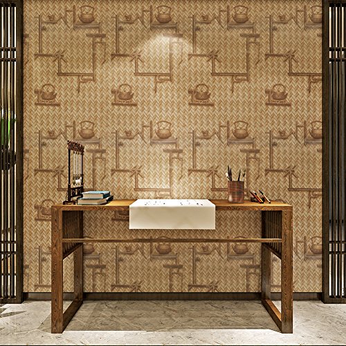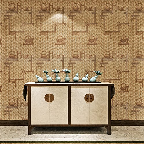 (ハンメロ)HANMERO®接着剤いらず粘着付き壁紙ビニールクロスかんたん貼付シールタイプおしゃれな織物調急須模様DIY/模様替え/ファーニチャーリフォーム/ベッドルーム/リビングルーム用約45cm巾×2m巻 (イエロー)