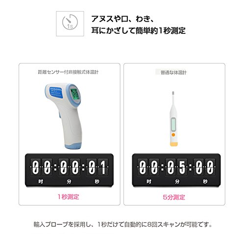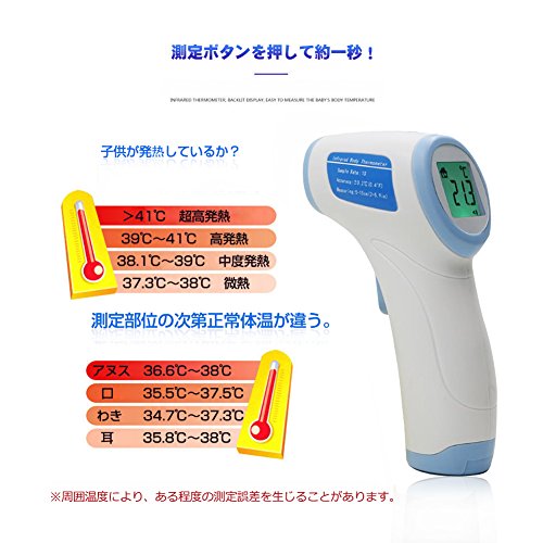 - 動きやすい赤ちゃんも瞬時にはかれる:赤外線体温計は人体からでる赤外線を読み取って素早く体温を表示します。じっとしにくい赤ちゃんや小さなお子様でも負担がかからず安心です。幼稚園の登校前など朝の忙しい時間もこれなら素早く検温できます。