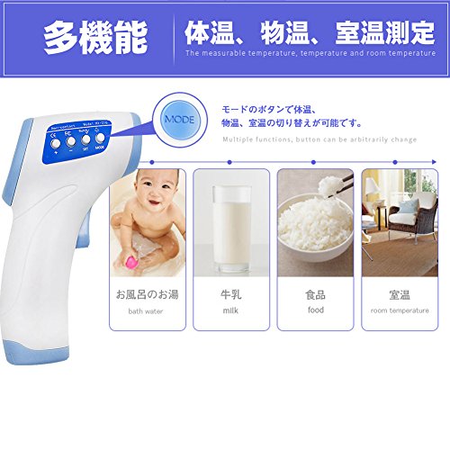 - 体温、物温、室温測定:アヌスや口、わき、耳にかざして約1秒で体温測定だけではなく、お風呂のお湯や赤ちゃんの牛乳、食品、室内などの温度にも測定できます。体温だけでなくモードを切り替えれば、物の表面温度、室温もはかれます。体温管理からミルクづくりなど子育てに役立つこと間違いなし