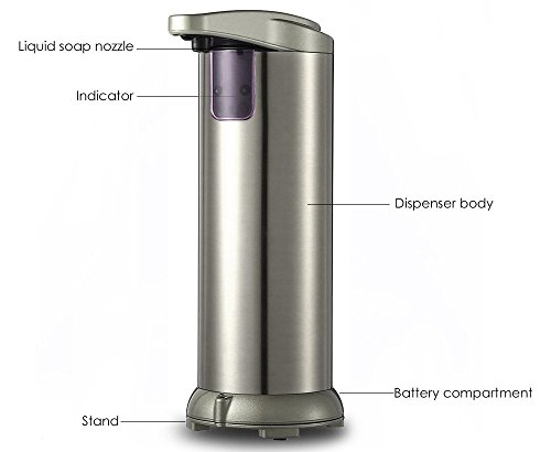 Package Contents: 1 x 280ml Stainless Steel Sensor Soap Dispenser, 1 x English User Manual