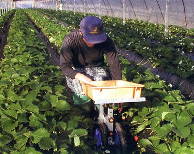 ●ハの字のタイヤ構造は安定がよく、狭い通路でもイチゴを傷めません。