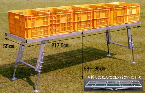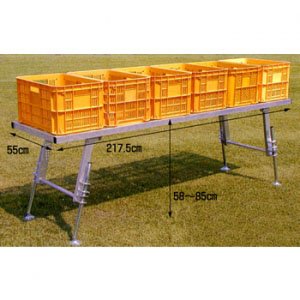 4本の脚が自在伸縮式ですので、不整地でも作業台を常に水平にでき、また作業に合わせて高さを58~85cmまで調整できます。(脚は折りたたみ式です)
