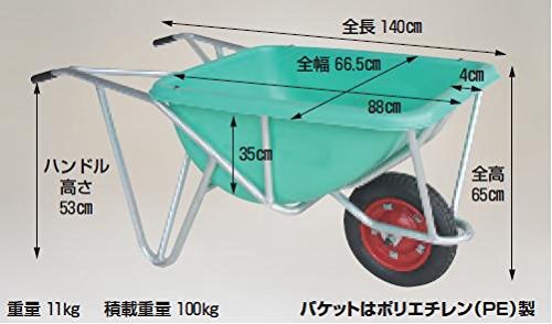バケットの容量が110リットルと大きく、さらに深型ですから飼料の運搬や野菜の収穫に最適です。