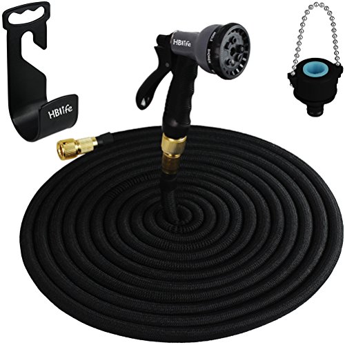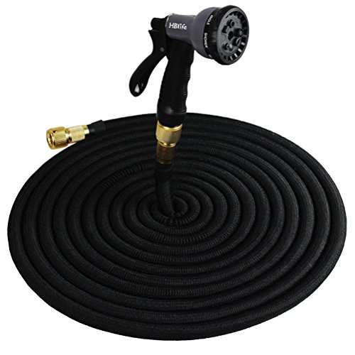 伸縮ホース HBLIFE 2017年強化改良版 伸びるホース マジックホース 高品質素材 漏水防止特許 10m-30m 3倍に伸びる 8パターン 花園 大掃除 園芸 洗車用ホース リール【一年間の安心メーカー保証 (ブラック 10m~30m)