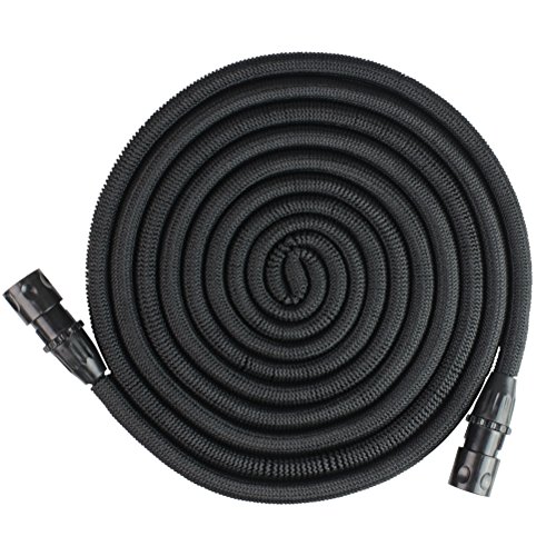 HBLIFE 花園用伸びるホース マジックホース 改良型 超強化素材 二層構造ゴム 伸縮 散水ホース 15m ホース 8パターン ガーデニング 花園 洗車 掃除用 散水ホース リール 2017年強化改良版 ブラック