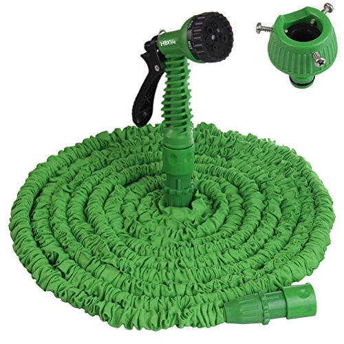 HBLIFE 改良版 花園用伸びるホース マジックホース 改良型 超強化素材 二層構造ゴム 伸縮 散水ホース 5m~15m ホース 金属製ノズル ガーデニング 花園 洗車 掃除用 散水ホース リール