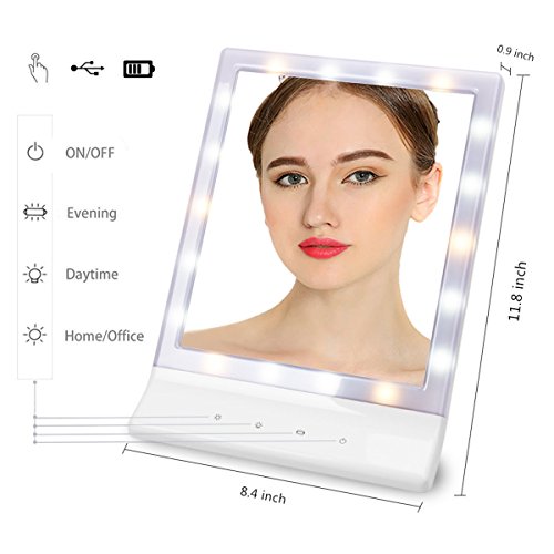 hblife 18 LEDライト付きメイクアップミラー、USB複数のイルミネーション設定Chargeable Tabletop Cosmeticミラーなし、リムーバブル10 x拡大鏡スポットミラー