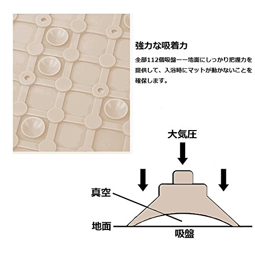 - ◆【安全•安心】 滑り止めの表面と112個安全の吸盤を持っています。強力な吸引力を持ち、ちゃんと吸い付いて、入浴時にマートが動かないことを確保します。安定感があり、安全、安心なお風呂を保障できます。