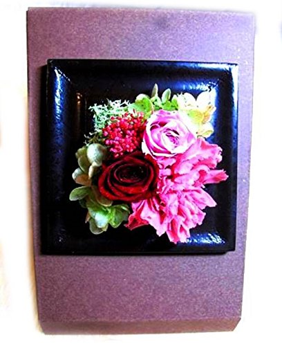 - 黒いフレーム花器にプリザーブドフラワーをアレンジメント。