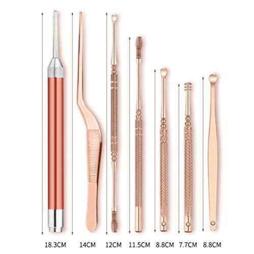 HEALIFTY 7Pc LEDソフトイヤーピックイヤークリーナーキュレット耳垢除去イアピッククリーニングツールセット、バッテリーなしの耳用