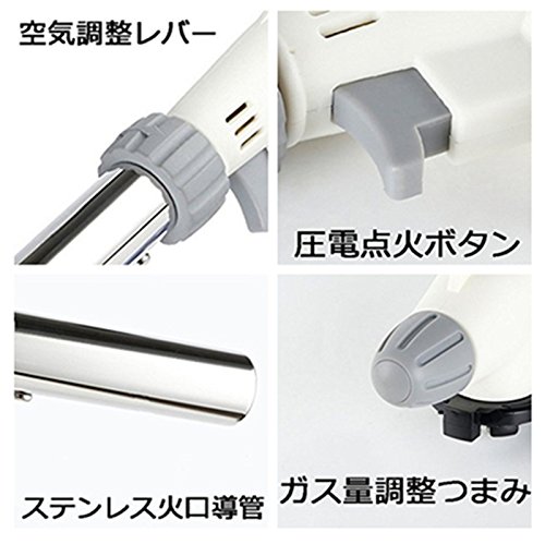- お手軽トーチバーナーで片手でワンタッチ点火でき、炎の強さも形も自由に調節できる高性能 ガスバーナーです。電子着火方式で最大1300℃以上の高温で火力が自由調節可能です。