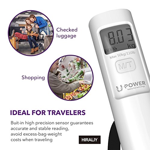 HIRALIY荷物 旅行はかり デジタル はかり 計量 器110LB / 50KG正確なデジタル荷物計量秤、ストラップとフック、旅行/アウトドアホーム用/バッテリー不要 荷物用ハンドヘルド(LS17、白)