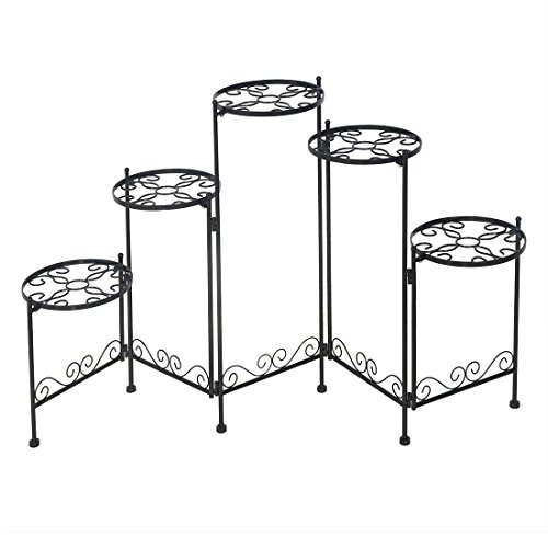 HLC 階段状 フラワースタンド(花台) ユーロクラシックデザイン (ブラック 五階)